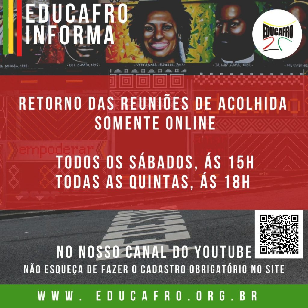 Para acompanhar as reuniões de acolhida ao vivo, acesse o nosso canal oficial do Youtube no link a seguir: https://www.youtube.com/watch?v=IPTvWA2mgHI.